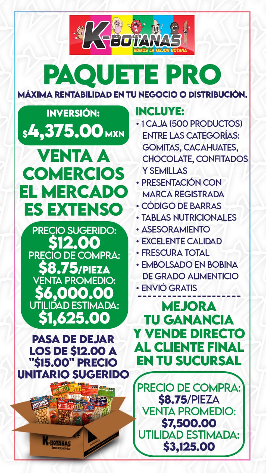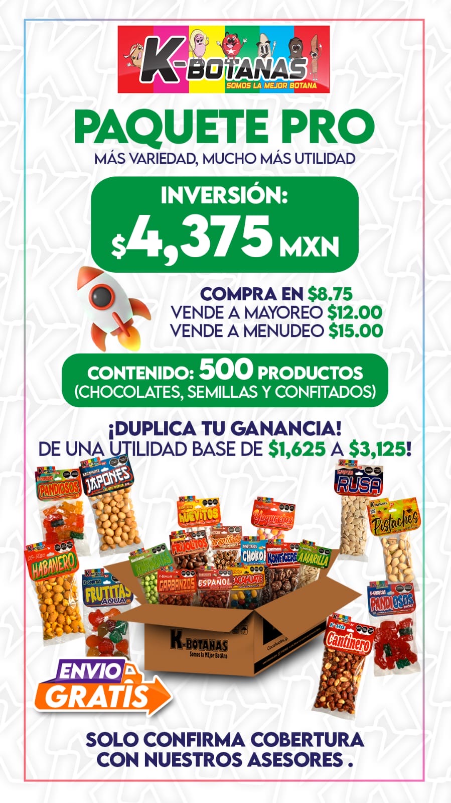 El Paquete Pro K-Botanas está diseñado para quienes no se andan con juegos. Ya sea que estés planeando una fiesta masiva, surtiendo tu tiendita o montando una mesa de dulces profesional, estas 500 piezas te garantizan variedad, frescura y el crujido perfecto que a todos les encanta.