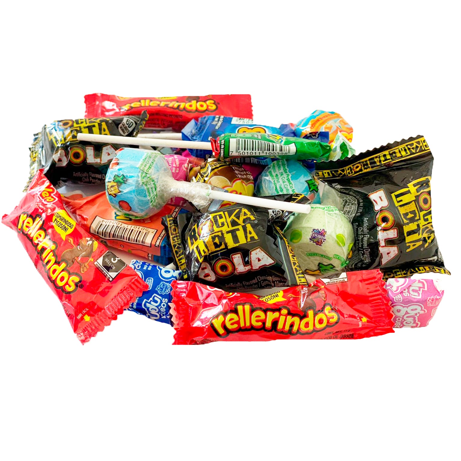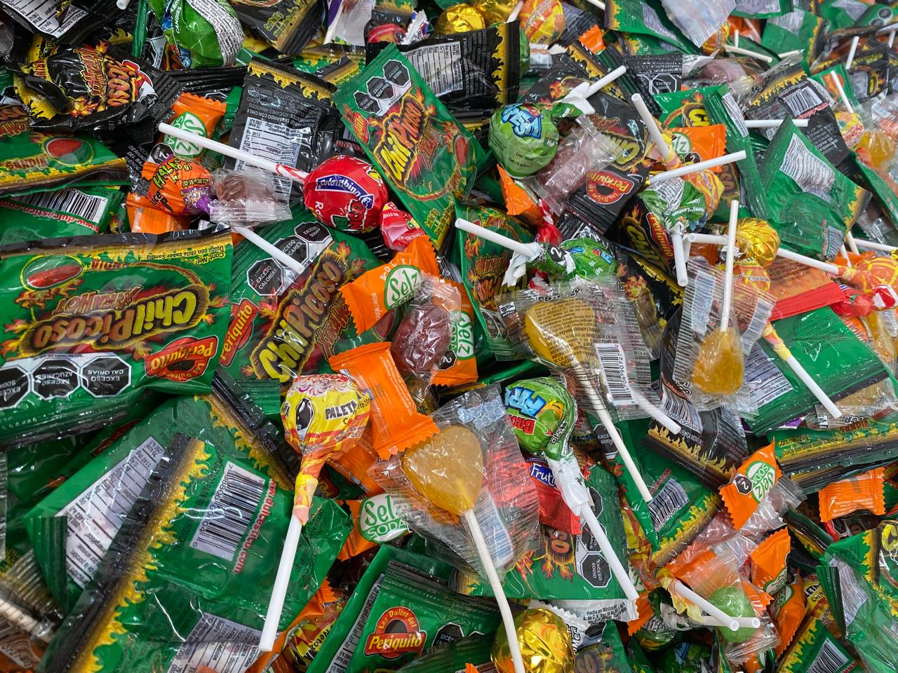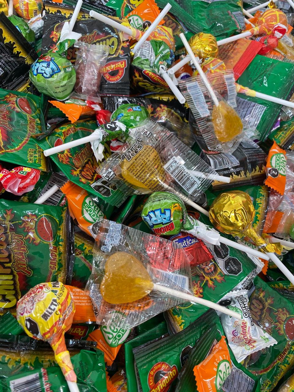 Mix Piñatero contiene, rocabola, rellerindos, paleta Tixtix, Paleta chupachus, Paleta Godupop y mas dulces en diferentes sabores. Ideal para Halloween y dia de Muertos.